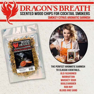 - Elevate your cocktail experience with our Tangerine flavored Dragon's Breath cocktail smoker wood chips. Immerse your senses in the captivating aroma of these premium wood chips, carefully infused with natural extracts, botanicals, and teas for a unique flavor profile. Perfect for your cocktail smoker, these chips will add an enticing layer of complexity to your drinks, making each sip a journey of discovery.