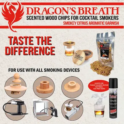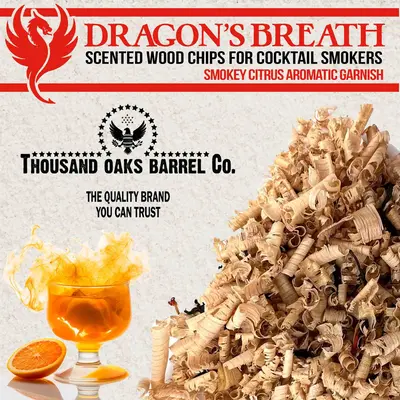 - Unique Flavor Infusion - Dragon's Breath cocktail smoking chips are infused with a variety of flavors including Absynthe, Blood Orange, Tangerine Tango, Mint Julep, Lemon Bliss, and Cinnamon Amira, adding a unique and flavorful accent to your smoked cocktails. These finely shaved wood chips are perfect for a whiskey smoker, bourbon smoker, cocktail smoker, or even a meat smoker. They can be used with a smoking chamber, smoking gun, glass top smokers, smoking domes or smoking cloche.
