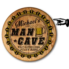 Personalized Quarter Barrel Man Cave Sign with 3D Relief Beer Mugs – Handmade 20”–21” Round Barrel End Wall Decor (QBX25) (120)
