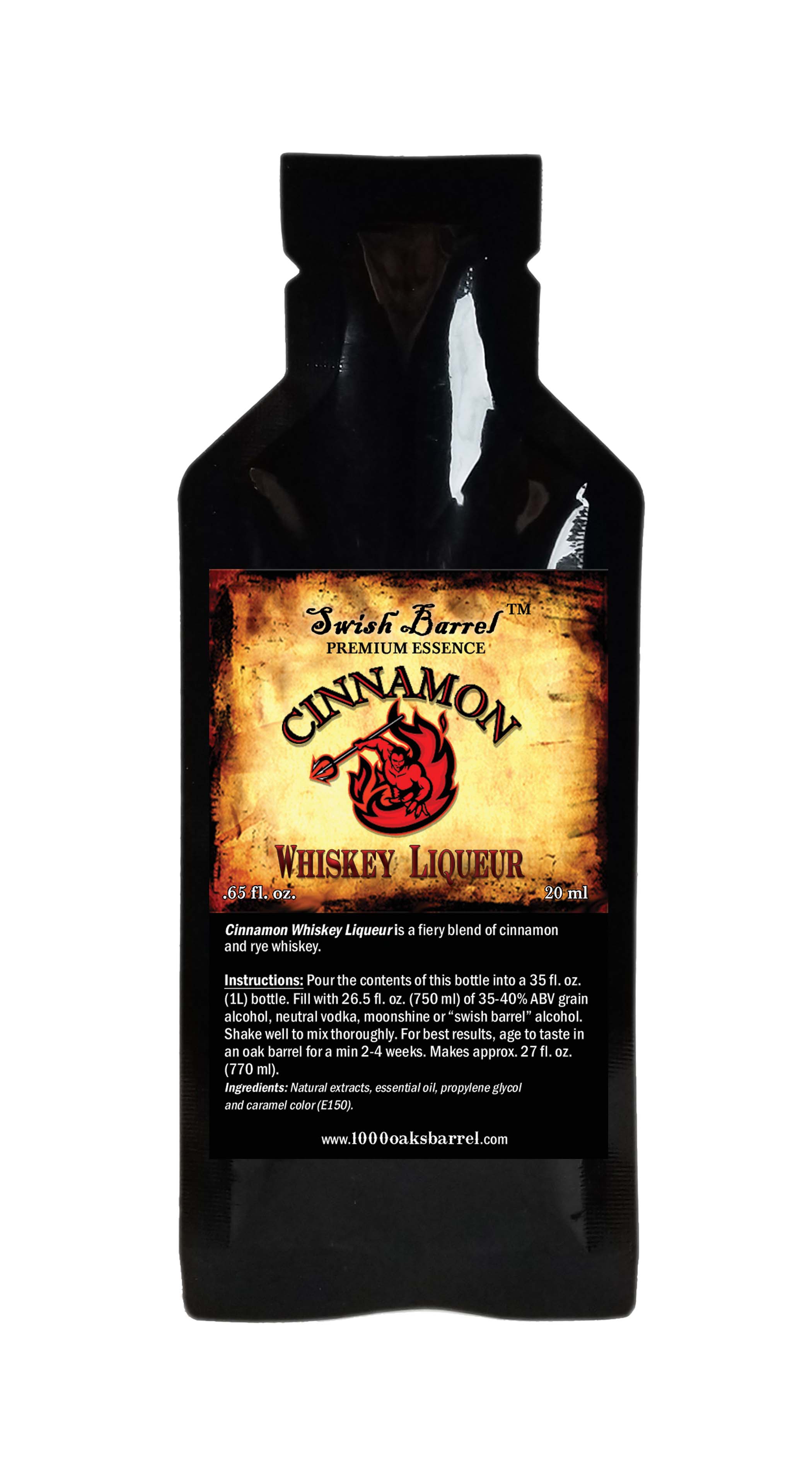 20ml packet of Cinnamon Whiskey Essence. A fiery blend of cinnamon and rye whiskey.