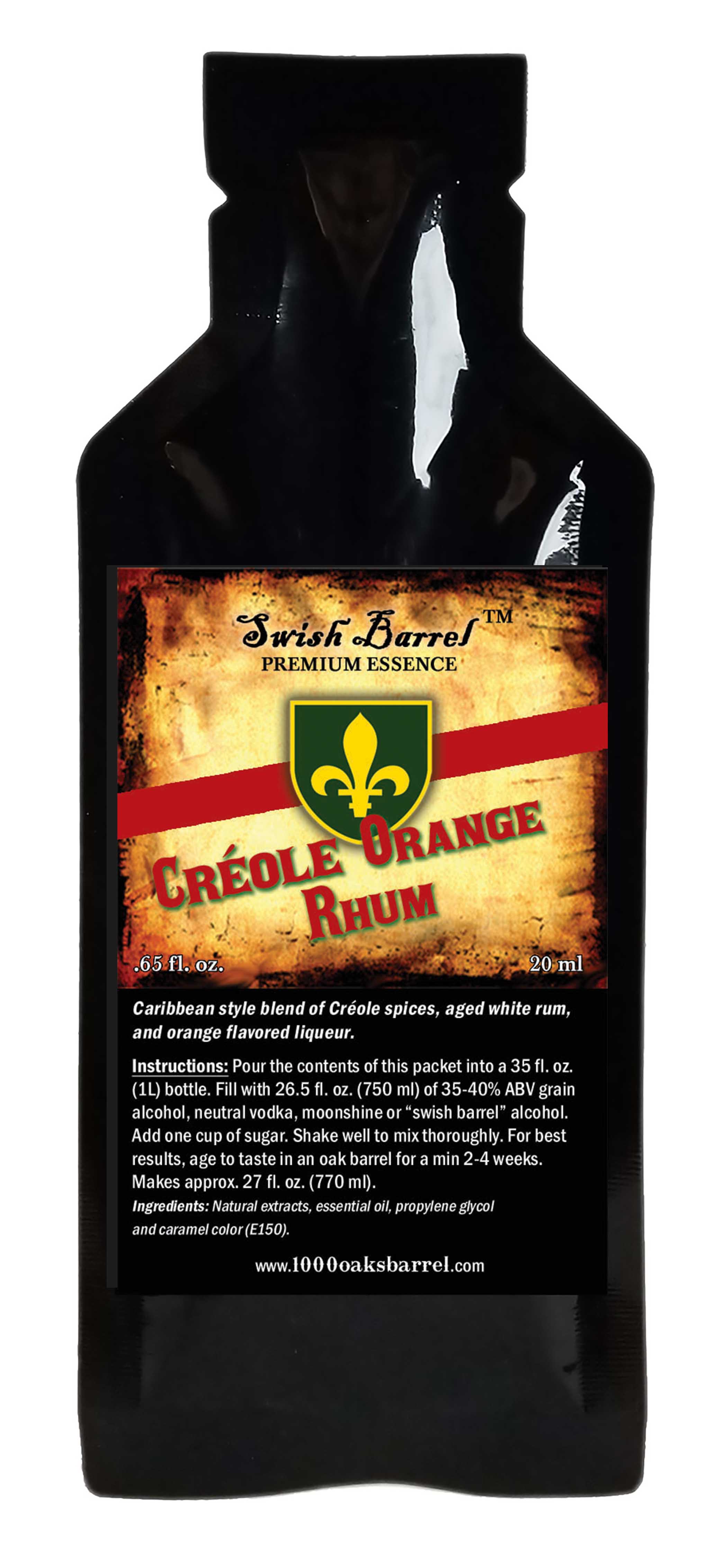 *Make Your Own Créole Orange Rhum flavored spirits at home using Swish Barrel Premium Essence. Swish Barrel essences are specially formulated to mimic the taste of premium spirit mash bills. When combined with a neutral spirit such as vodka, moonshine, or grain alcohol the taste can be indistinguishable from many known brands.
