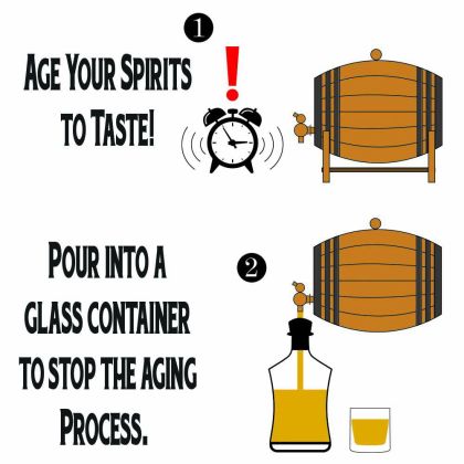 Instructions: Pour the contents of the packet into a 1 liter barrel or (750 mL) bottle. Fill with 25 fl. oz. (725 mL) of 40% alc./vol. grain alcohol, neutral vodka or swish alcohol. Shake well to mix thoroughly. Makes 26 fl. oz. (750 mL). Age spirits to your taste in an Oak Barrel.