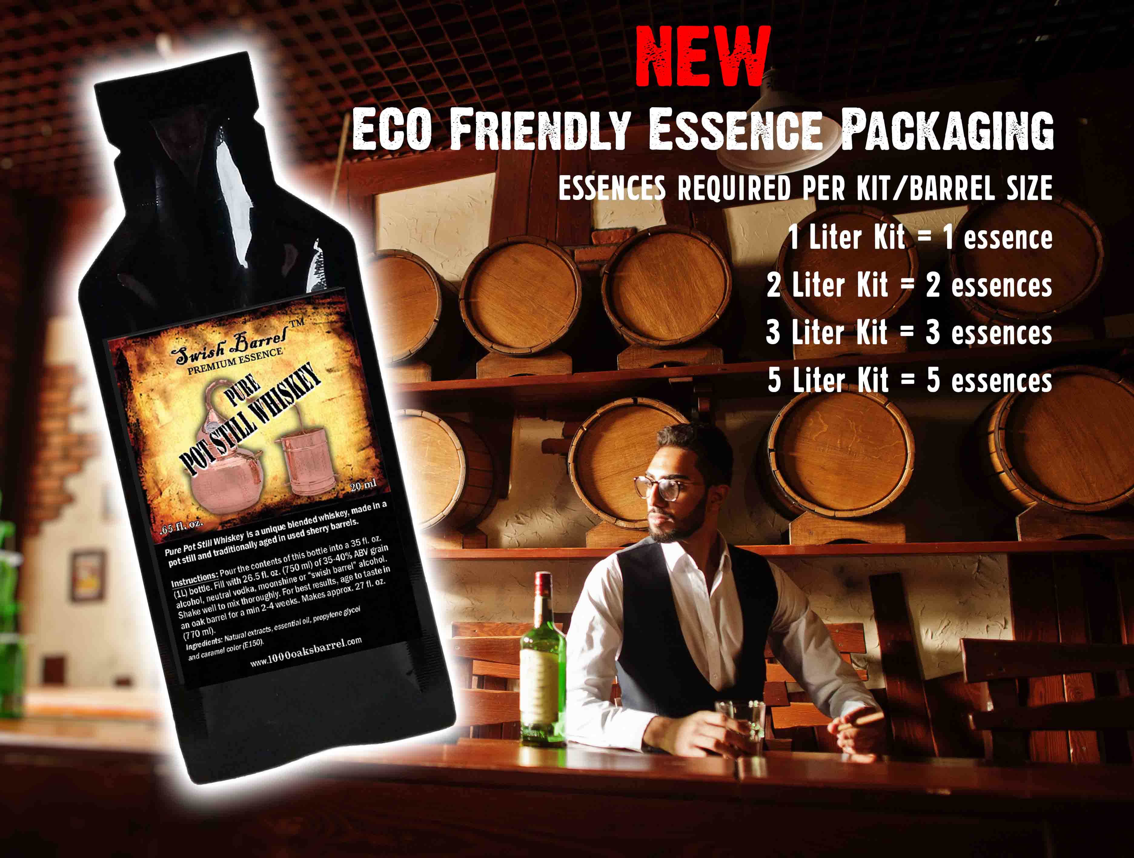 Instructions: Pour the contents of the packet into a barrel or (750ml) bottle. Fill with 25 fl. oz. (725ml) of 35-40% alc./vol. grain alcohol, neutral vodka or swish alcohol. Shake well to mix thoroughly. Makes 26 fl. oz. (750 mL). Use 1 bottle of essence per liter of alcohol.