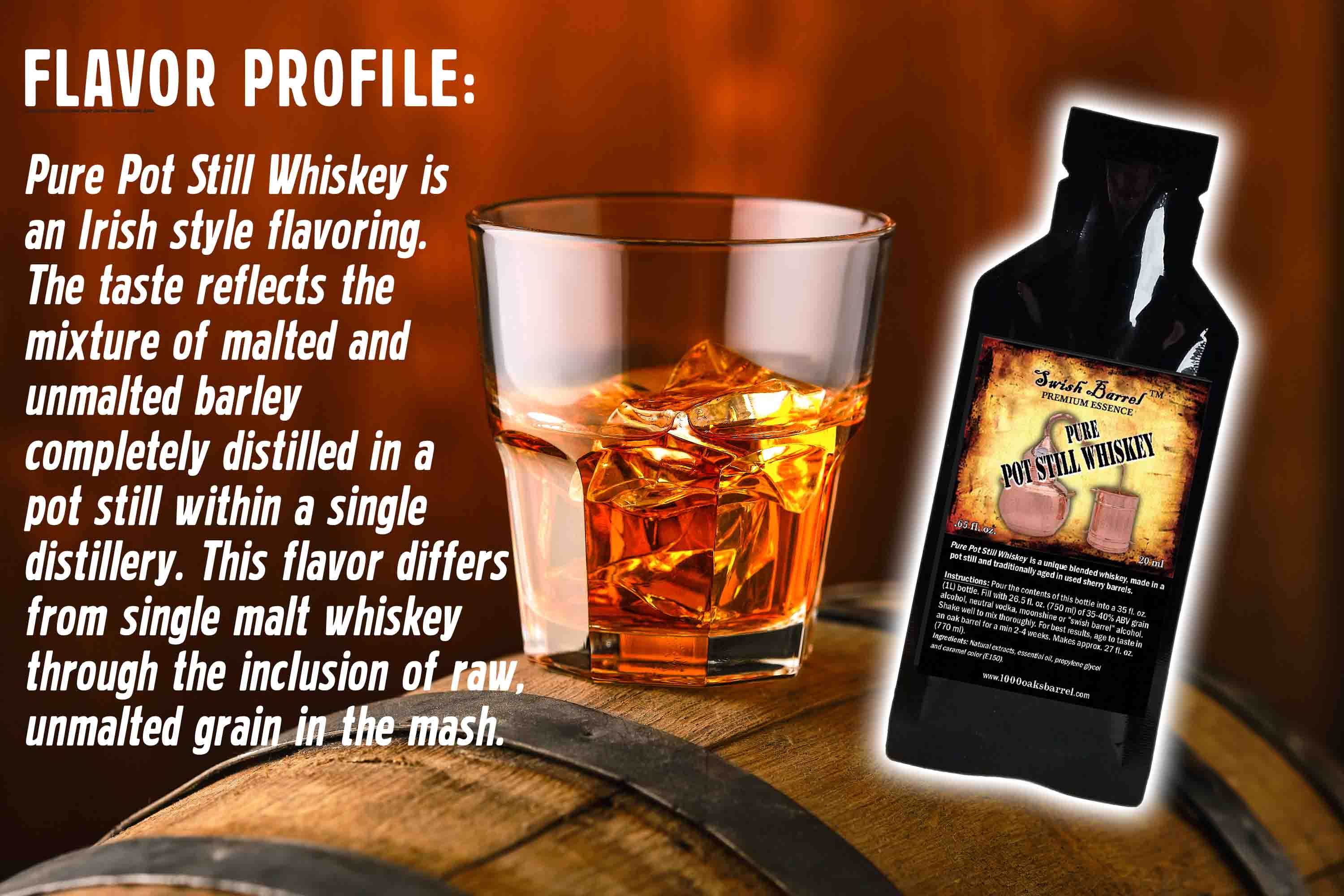 20ml packet of Pot Still Whiskey Essence. Make your own Pot Still Whiskey! A unique blended whisey, made in a pot still and traditionally aged in used sherry barrels.