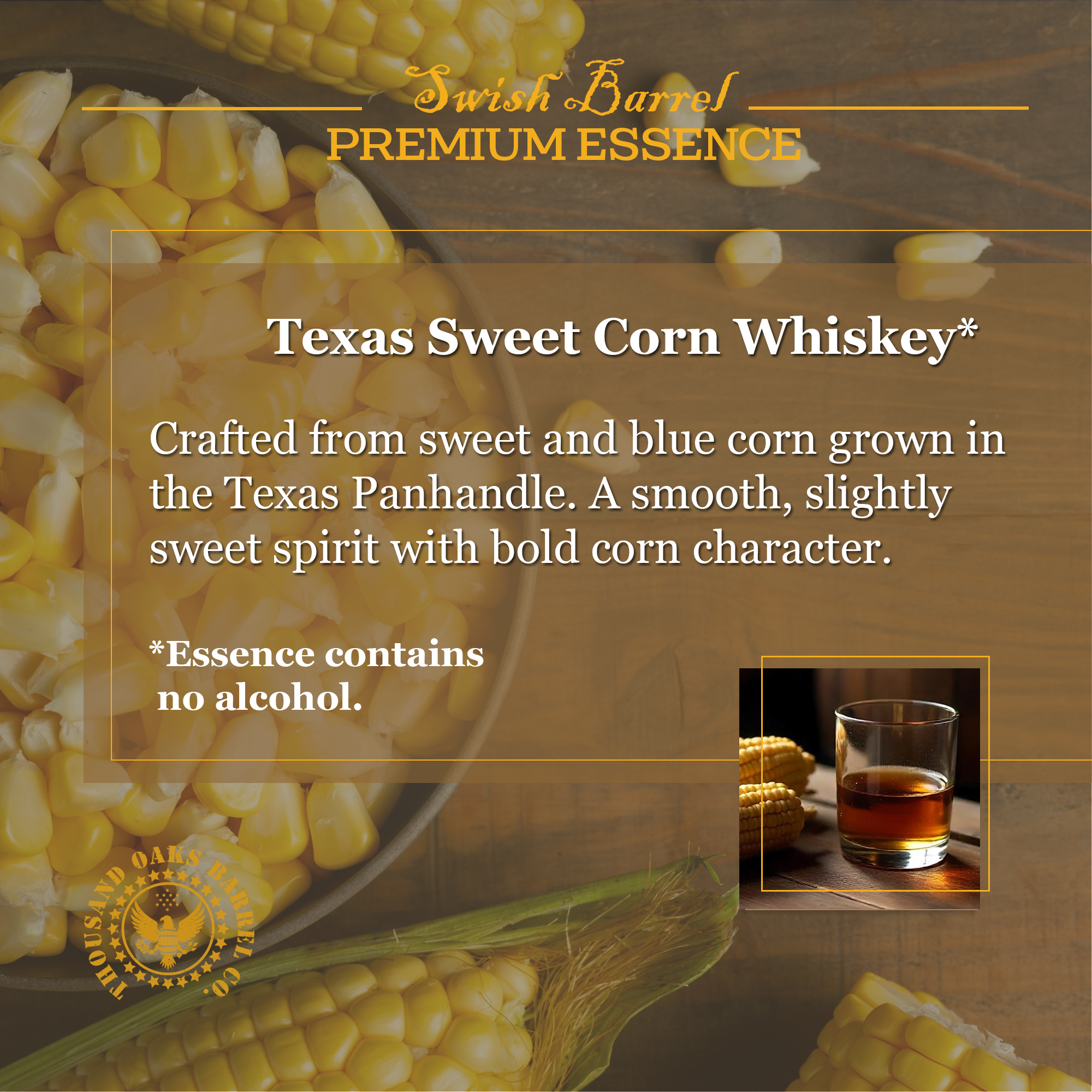 Texas Sweet Corn Whiskey Essence delivers a bold yet smooth Southern character: