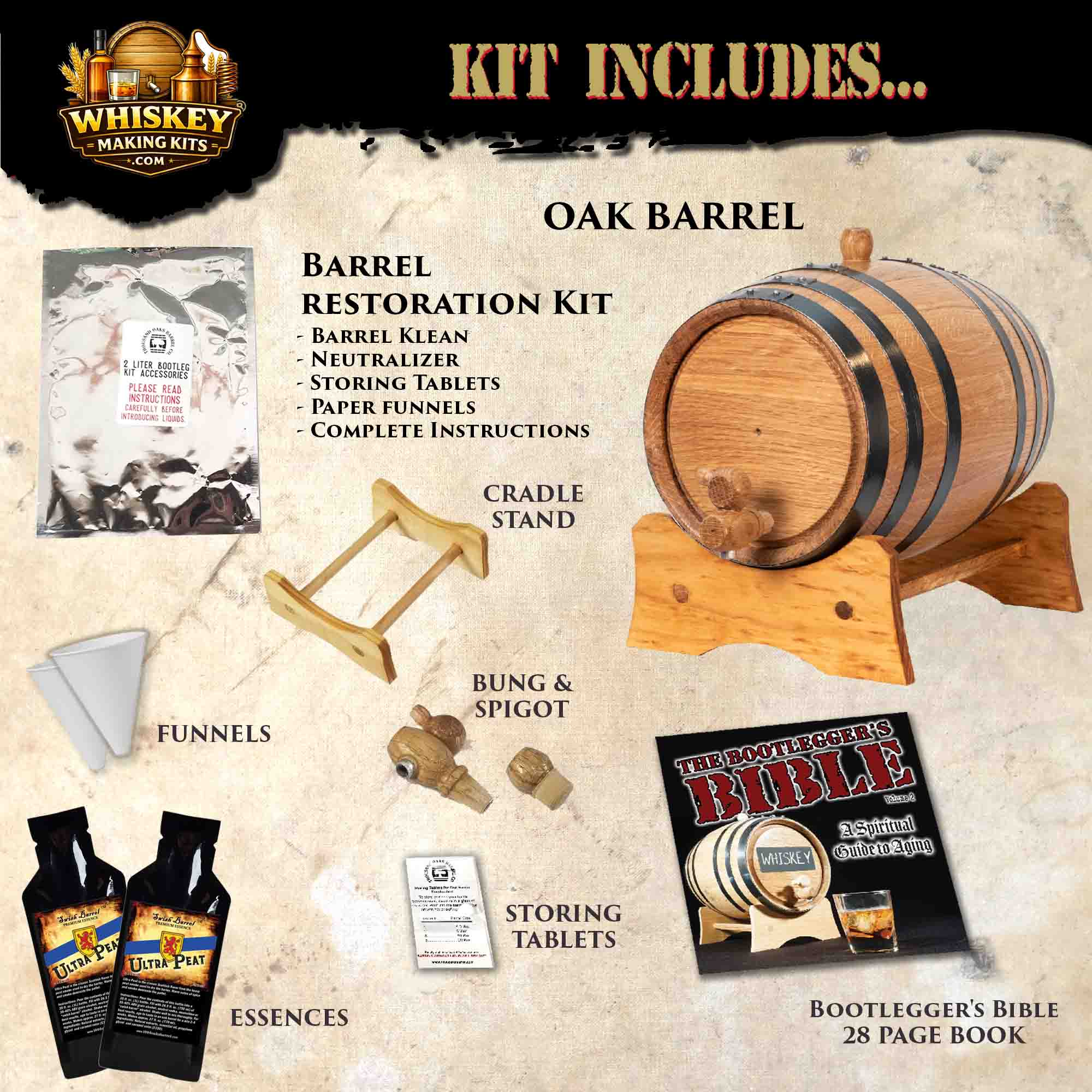 Experience the unmistakable intensity of heavily peated Scotch with the Ultra Peat Scotch Whisky Making Kit™, a complete home whisky aging barrel system designed to replicate the smoky character of Islay-style Scotch whisky.
