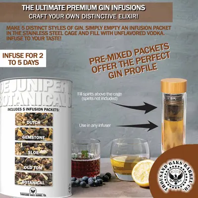 Whether you're hosting a soirée, impressing your guests, or treating yourself to a moment of pure indulgence, our Gin Infusion Packets are the perfect companion. Delight in the art of mixology and unleash your creativity as you experiment with different flavors. Unleash the alchemist within you and let your gin truly shine.