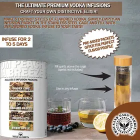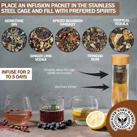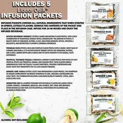 Liquor Quik® Infusion Kit – Premium Alcohol Infuser Bottle with Stainless Steel Cage & 5 Gourmet Spirit Infusion Packets