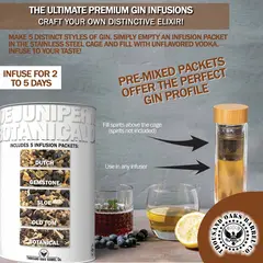Liquor Quik® Gin Making Kit – Premium DIY Craft Gin Infuser with Botanical Blends, Stainless Steel Infuser Bottle & 3 Gin Flavor Packets | Make Homemade Gin from Vodka