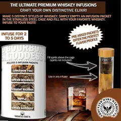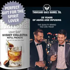 Liquor Quik® Premium Whiskey Infusion Kit – DIY Bourbon & Whiskey Flavoring Set with Glass Infuser Bottle, Stainless Steel Strainer & 3 Gourmet Infusion Packets