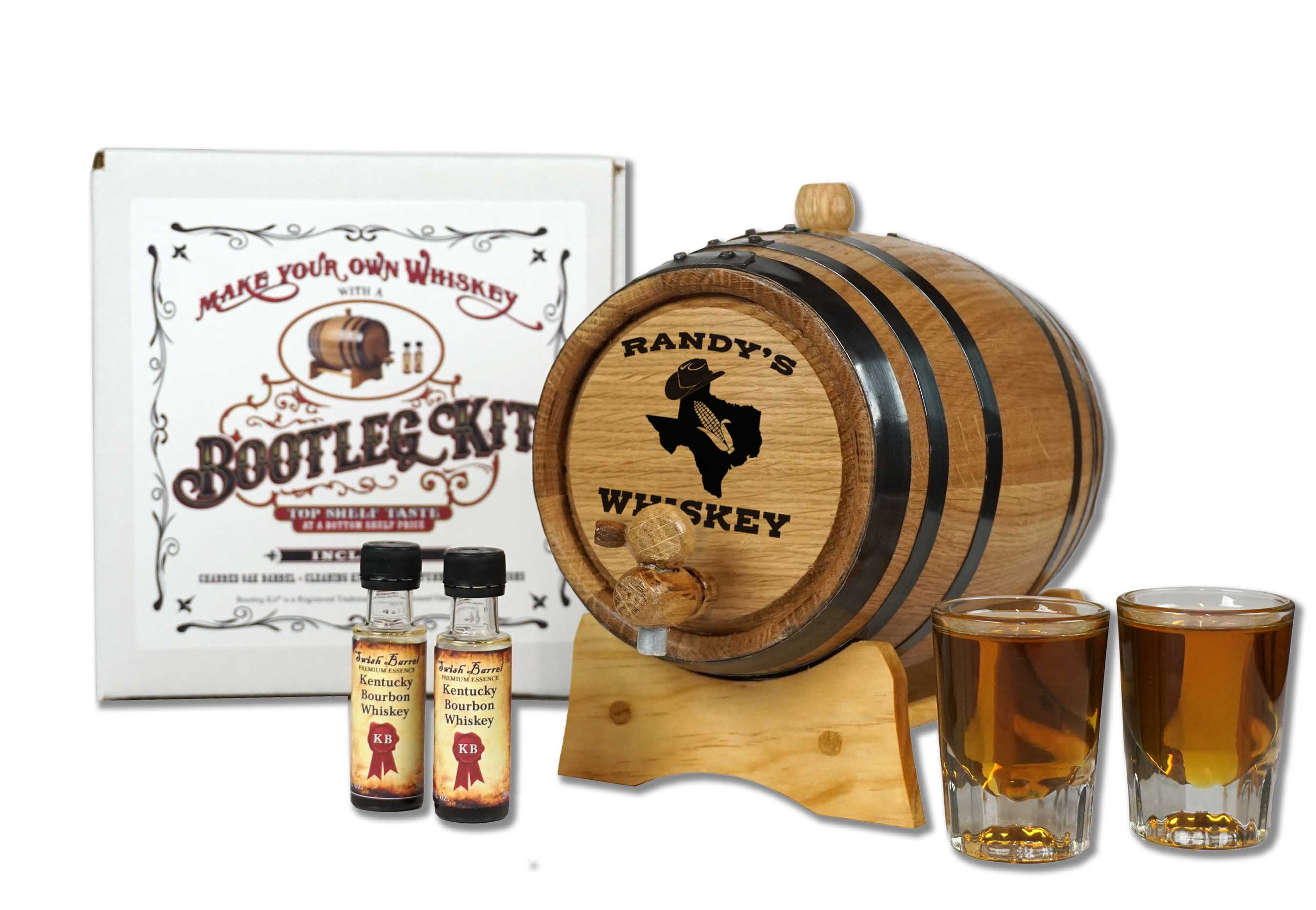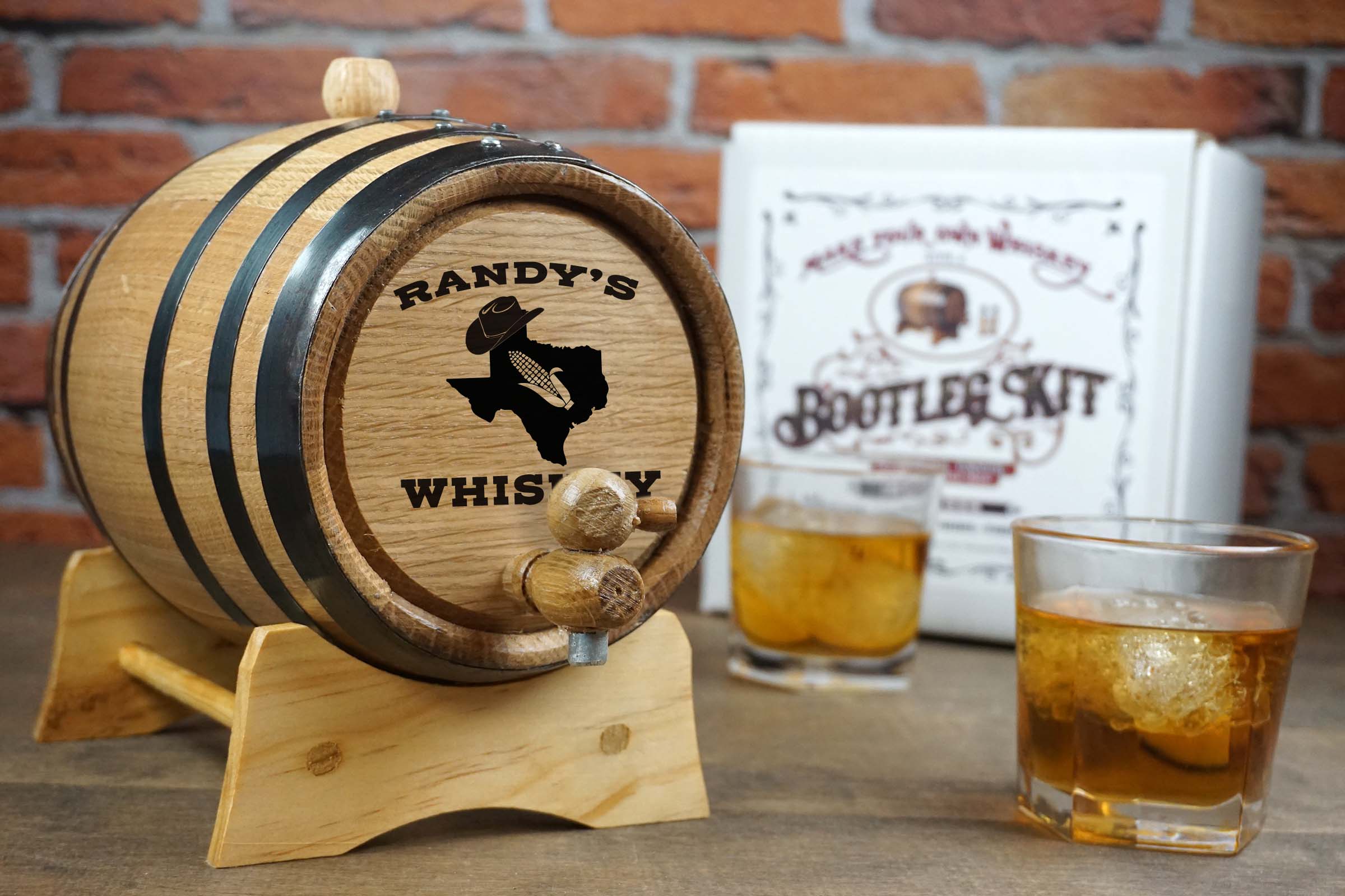 Personalized Bootleg Kit™. Make and age your own spirits with a Bootleg Kit™. The kit includes everything you need to make your finest spirit and age to perfection in a personalized American oak barrel. Simply select the spirit type, enter your personalized information, and select the size.