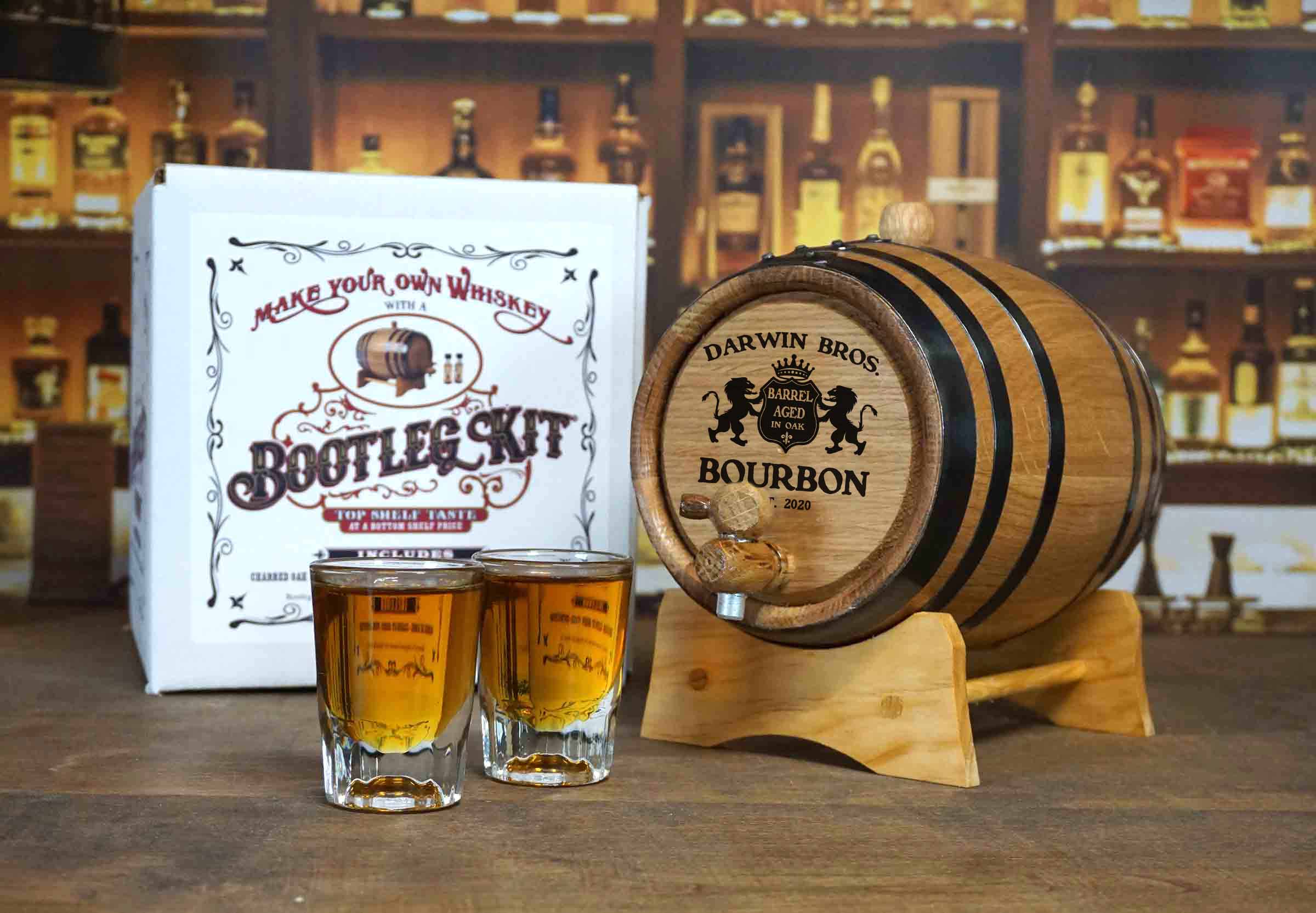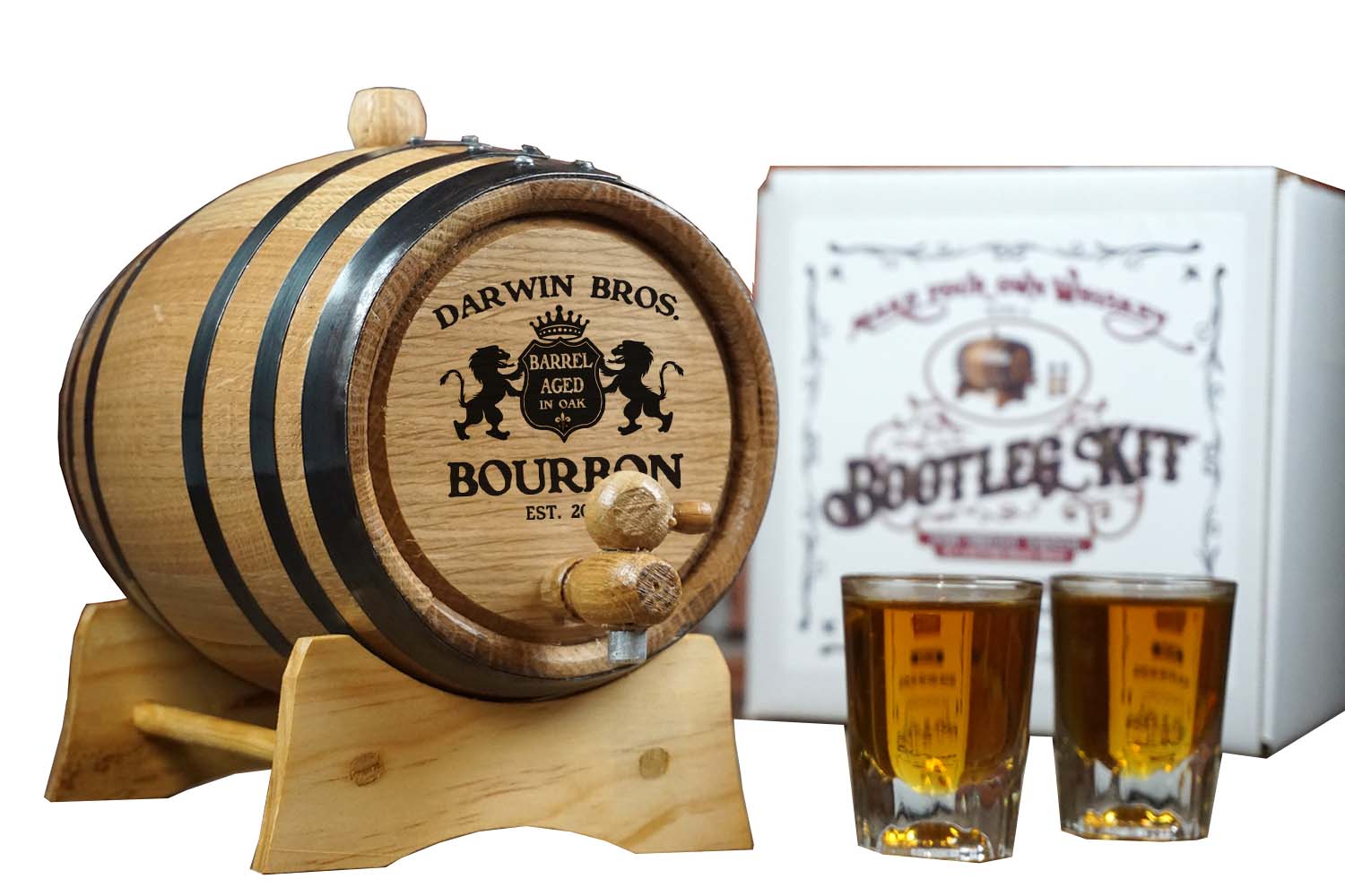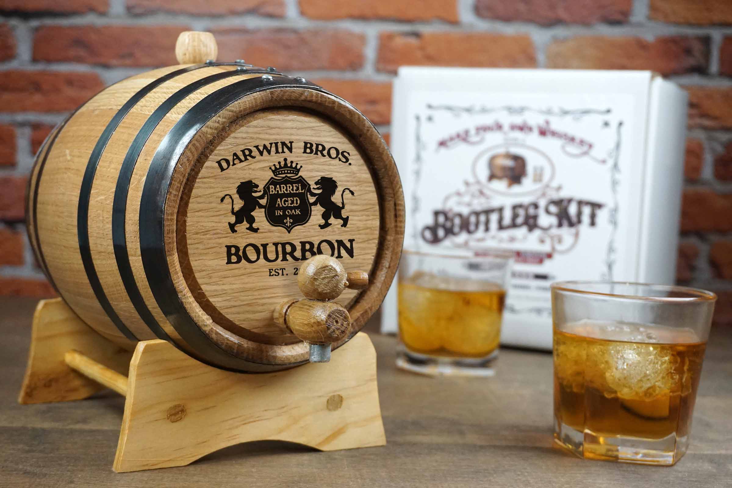 Personalized Bootleg Kit™. Make and age your own spirits with a Bootleg Kit™. The kit includes everything you need to make your finest spirit and age to perfection in a personalized American oak barrel. Simply select the spirit type, enter your personalized information, and select the size.