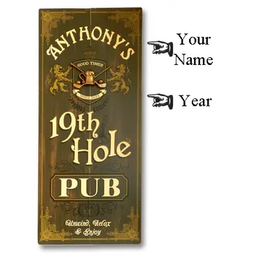 Personalized Pop Art vintage wooden plank sign with sculpted relief. Handcrafted by the Thousand Oaks Barrel Co. in Manassas, Virginia of furniture grade wood planks and professionally printed using proprietary Poly-Arch Lithography. Each 'sign art' piece is individually made upon order. From cutting and preparing the plank, to painting, screening, hand lettering, and distressing, each is a unique piece of art. The sculpted relief is made entirely in-house by staff artisans.