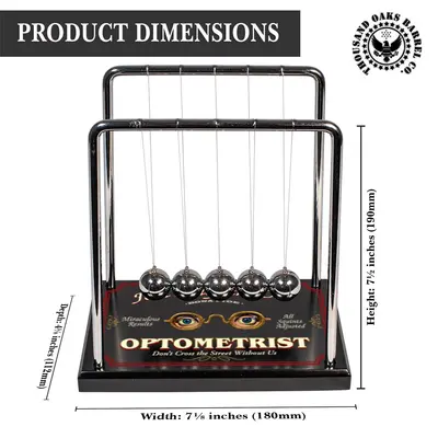 • Dimensions: The physics desk toy stand measures 4.5 x 7.5 x 7.5 inches.