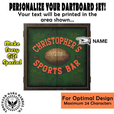 Personalized dartboard and cabinet set! This personalized cabinet will complete the look of any game room with a classic matte black traditional finish with a personalized graphic. Don't leave your wall unprotected from errant throws! The cabinet has a coated finish meant to absorb the toughest of impacts. The sharp, sleek design will complement most decors and will ensure that your dartboard doesn't clash with your style.