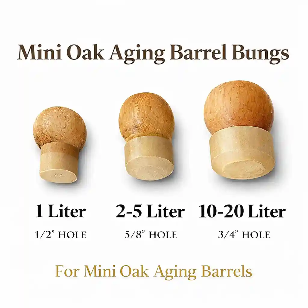 Crafted from durable hardwood with a secure cork base, these barrel stoppers provide a tight seal to protect spirits during the aging process while allowing proper barrel function. They are ideal replacement bungs for mini oak barrels used in home distilling, cocktail aging, and whiskey making kits.