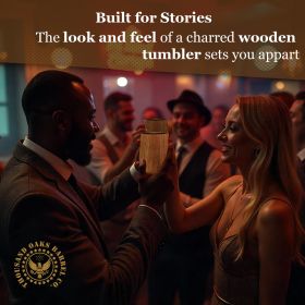 Wooden Whiskey Glass – Handcrafted American Oak Cup Tumbler with Charred Interior for Bourbon, Scotch & Whiskey – Durable Gift for Men