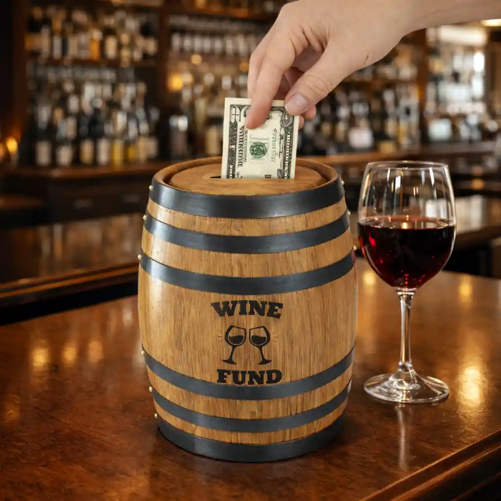 Whether you're stocking your wine cellar, decorating your bar, or shopping for a unique wine gift, the Wine Fund Mini Oak Barrel Piggy Bank combines rustic craftsmanship, humor, and practical savings in one unforgettable piece.