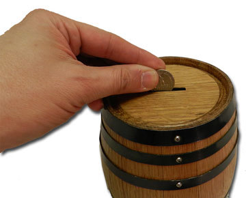 Need a special place for that loose change? How about a savings account for that special bottle? The Thousand Oaks Barrel Co. barrel bank is the perfect solution for all (at least some) of your banking needs.