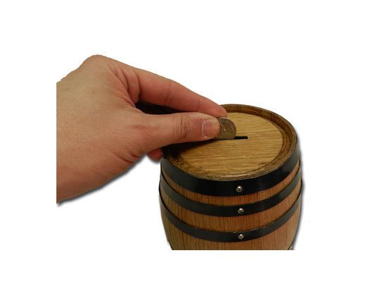 Need a special place for that loose change? How about a savings account for that special bottle? The Thousand Oaks Barrel Co. barrel bank is the perfect solution for all (at least some) of your banking needs.