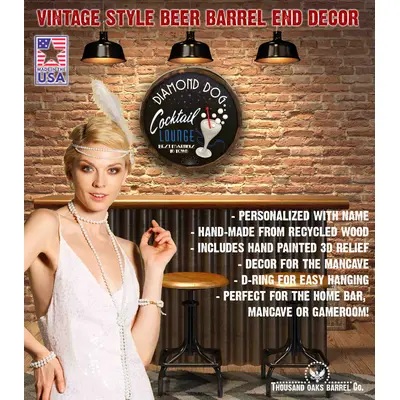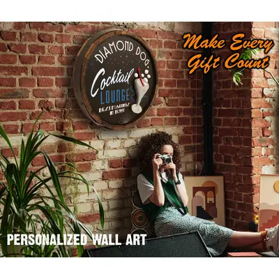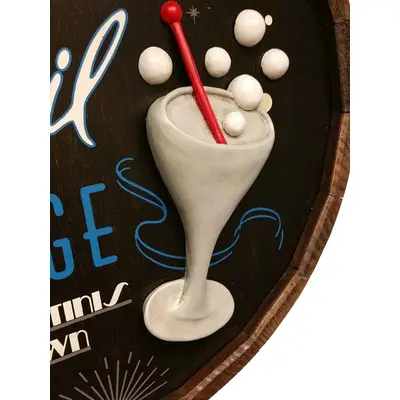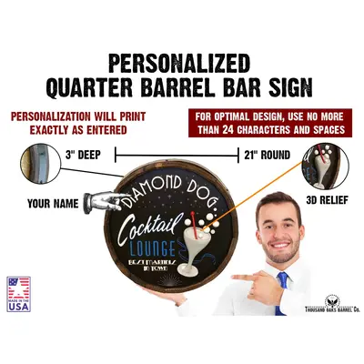 Customize your own Quarter Barrel Sign! This exquisite quarter barrel sign is hand painted with your custom text with a traditional pizza slice relief. Hanging hardware is included.