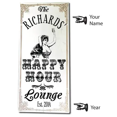 Personalized Pop Art vintage wooden plank sign with sculpted relief. Handcrafted by the Thousand Oaks Barrel Co. in Manassas, Virginia of furniture grade wood planks and professionally printed using proprietary Poly-Arch Lithography. Each 'sign art' piece is individually made upon order. From cutting and preparing the plank, to painting, screening, hand lettering, and distressing, each is a unique piece of art. The sculpted relief is made entirely in-house by staff artisans.