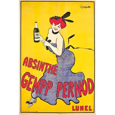 Ad: Gustave Charles Gempp married Louise, Edouard Pernod’s daughter. Learning from his father-in-law, Gustave was able to develop and improve his absinthe distillation skills. Gempp Absinthe was widely known for its distinct taste. This advertisment was designed by Leonetto Cappiello
