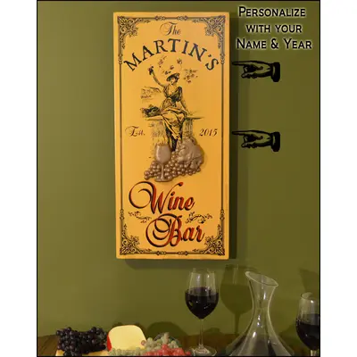Personalized Pop Art vintage wooden plank sign with sculpted relief. Handcrafted by the Thousand Oaks Barrel Co. in Manassas, Virginia of furniture grade wood planks and professionally printed using proprietary Poly-Arch Lithography. Each 'sign art' piece is individually made upon order. From cutting and preparing the plank, to painting, screening, hand lettering, and distressing, each is a unique piece of art. The sculpted relief is made entirely in-house by staff artisans.