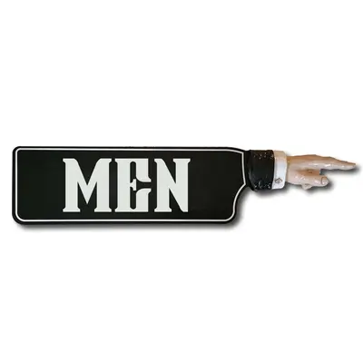 Vintage 'MEN' Directional Sign w/ Hand Relief. Made from 1/2" furniture grade MDF with a hand sculpted relief. Select from Left or Right pointer.