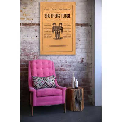Brothers Tocci (c1880s) Classic show poster art printed on wood.