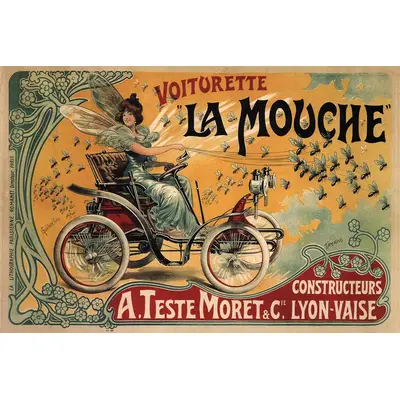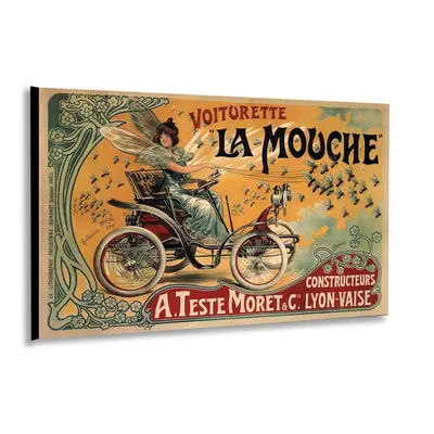 Voiturette La Mouche (c1900s) Classic early French automobile poster art printed on wood in the selected format and size
